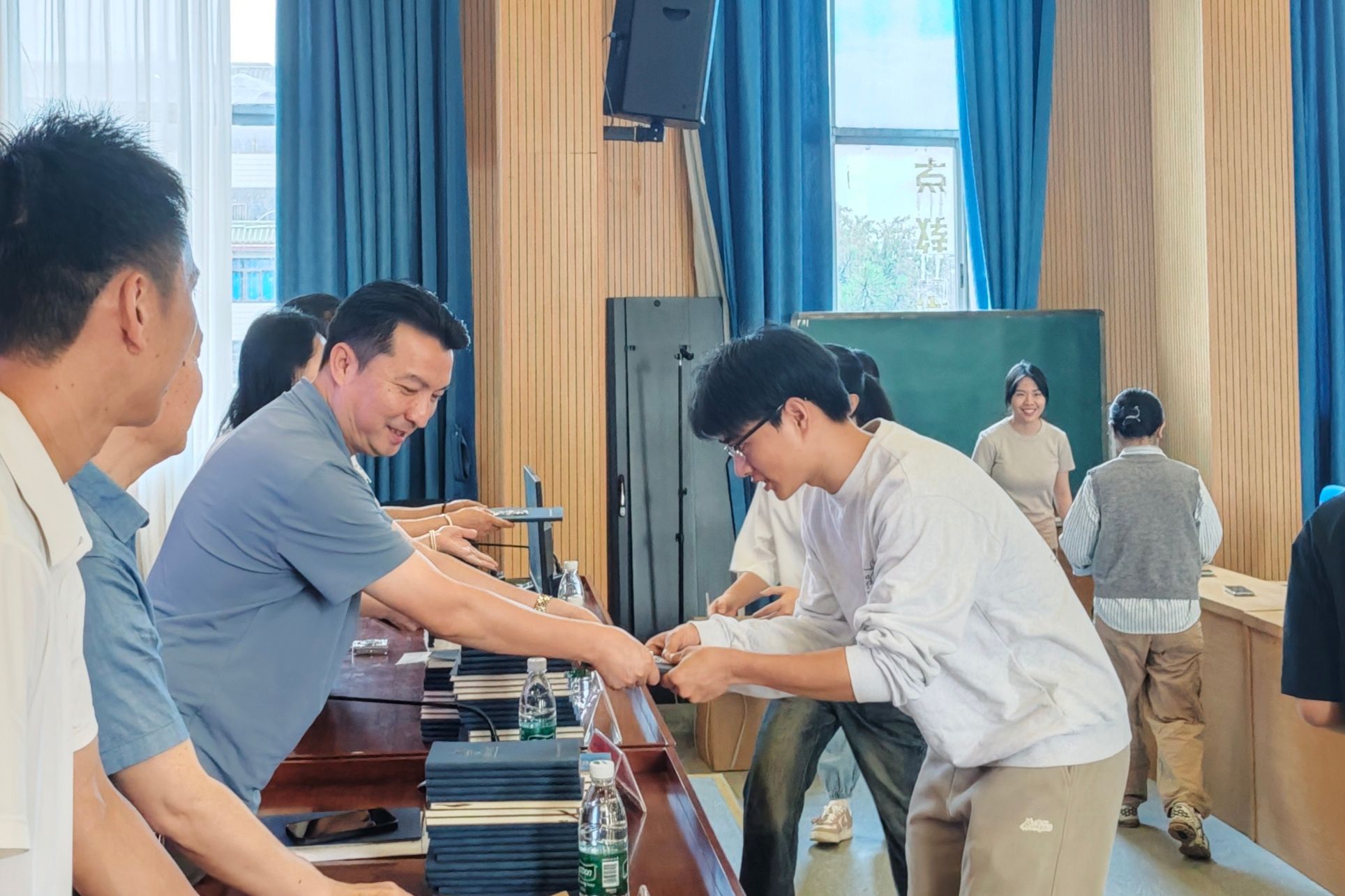 仪式现场,学院精心为毕业生准备了纪念品,学院领导为即将离校的毕业生送上承载着学院文化印记的专属礼物,以院训为引、以院徽为媒,为学子们镌刻下难忘的青春记忆。