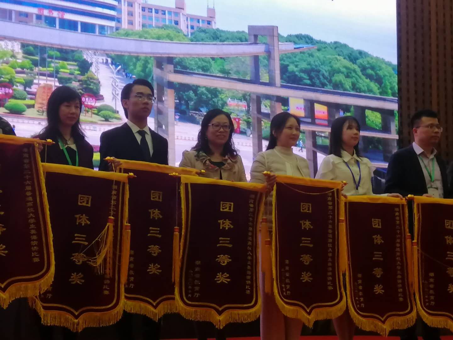 本网讯(通讯员 彭宁红、唐媛) 10月31至11月1日,湖南省第26届普通高校大学生英语演讲比赛暨第十一届“外研社杯”全国大学生英语演讲比赛湖南赛区复赛在湖南工程学院落下帷幕。我校外国语学院英语师范专业2018级学生张沁宁荣获英语专业组三等奖,人文与社会科学学院法学专业2018级学生谭嫦春、电子与信息工程学院通信专业2018级学生步桐荣获非英语专业组三等奖,学校荣获团体三等奖。