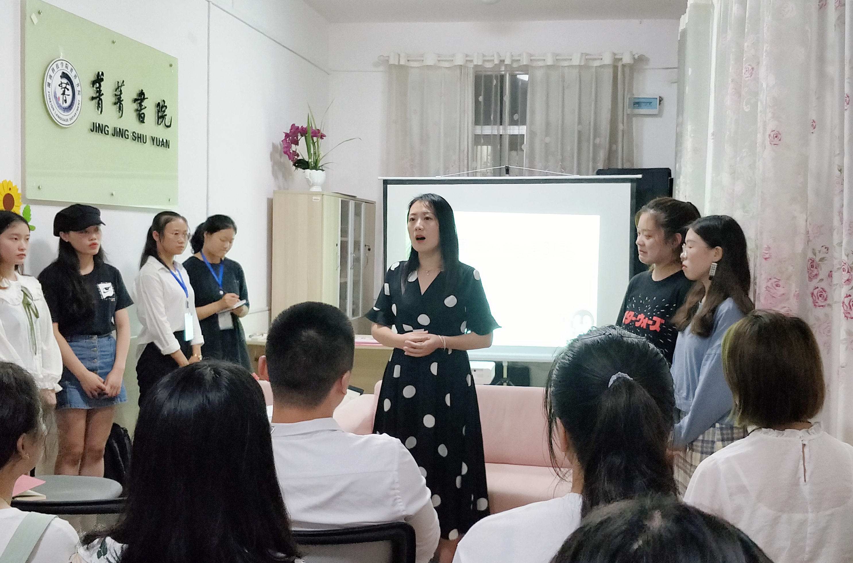 本网讯(通讯员 张露、李政锴)10月11日晚,第三十一期“菁菁学子讲坛”在菁菁书院如期举行,外国语学院团学机构学生负责人徐嘉怡、欧芯露、寻琼、尹嘉涵应邀分享。外国语学院党总支副书记罗晶,团委书记刘罗莅临现场指导活动。