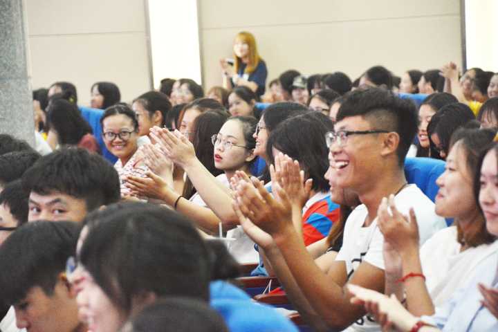 高年级优秀学生代表、国家奖学金获得者日语1601班杨霞同学发言。在欢迎过新同学们之后,杨霞学姐以一个经历者的身份给同学们提出一些建议:大学不是结束而是新的开始,一定要继续努力,抓住每一次的机会,多参与校园活动,丰富自身素质。