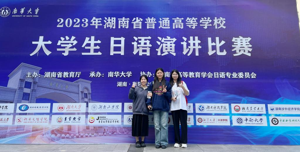 本网讯(通讯员 宋琳)11月5日,我院日语系学生于璟、游紫荆、周霜团队参加第十四届湖南省普通高等学校大学生日语演讲比赛,荣获团体一等奖。