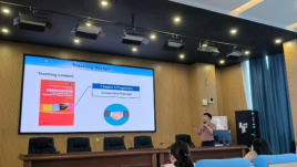 本网讯(通讯员 黄雪梅)3月25日下午,湖南省普通高校课程思政教学比赛三等奖获得者谭浩亮副教授在博雅楼东三教室进行了一场课程思政示范课展示。公共英语教学部、英语系及商务英语系老师参加此次活动。