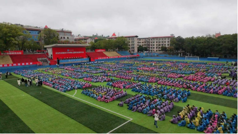 谷利民宣布军训团领导及军训建制,本次军训共有4768人参训,设1个军训团,4个营,76个连,为期14天。