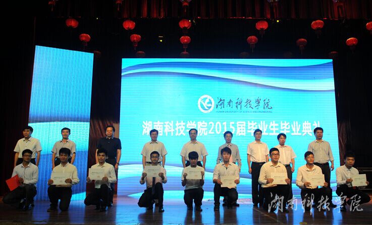 副校长李常健宣读《8868官方网站关于授予张洁平等3230名本科毕业生学士学位的决定》以及毕业生资格审查结果。副校长程智开宣读湖南省教育厅《关于表彰湖南省普通高校2015届优秀毕业生的通报》,我校67名毕业生受到表彰。 校领导陈弘、曾宝成、宋宏福、彭立威、郑山明、李常健、吴小林、程智开、袁先友为获得省级优秀毕业生的同学颁发荣誉证书。