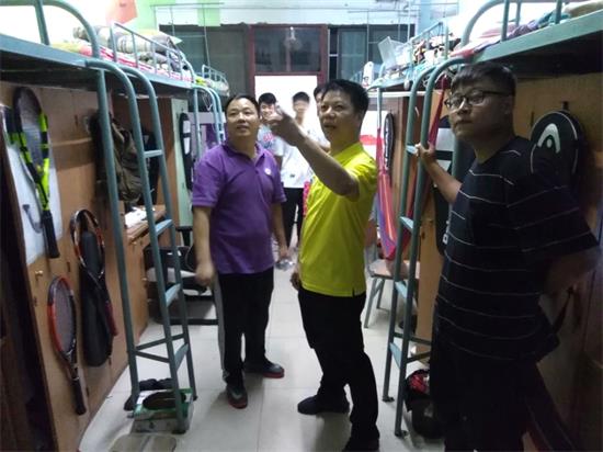 程智开先后走访了松园宿舍和荷园宿舍,在宿舍程智开仔细检查宿舍门禁设备,叮嘱楼栋安保员要切实守好学生安全防护的第一道门。程智开还深入大四学生宿舍,排查宿舍安全隐患,仔细询问学生就业情况,并在论文答辩、就业等方面提出建议。