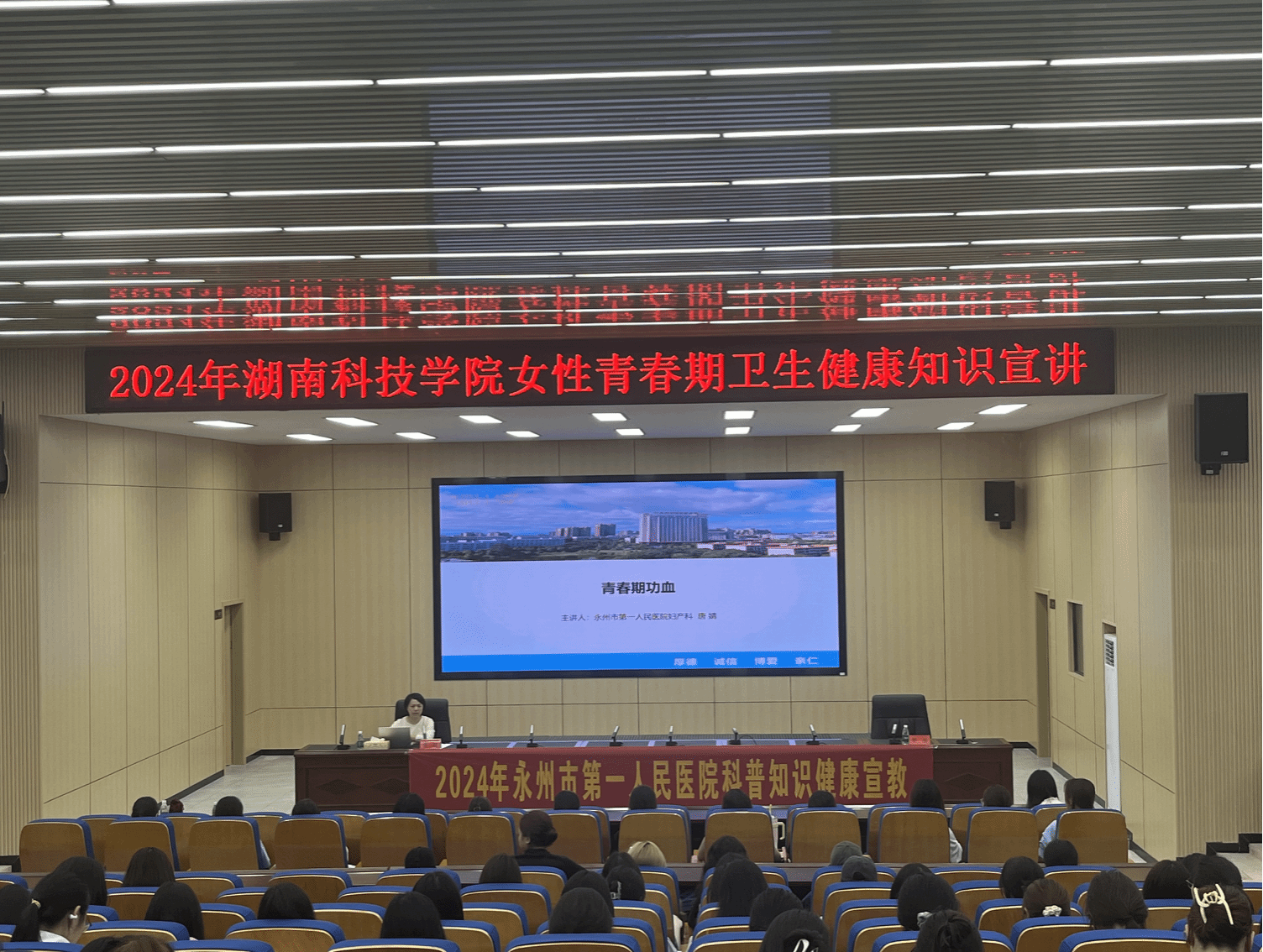为进一步提高我校女生对青春期健康知识的认知水平,强化其自我保护意识,推动身心健康发展,学生工作部特邀永州市第一人民医院妇产科副主任医师唐婧,于我校开展2024 年8868官方网站女性青春期卫生健康知识宣讲活动。