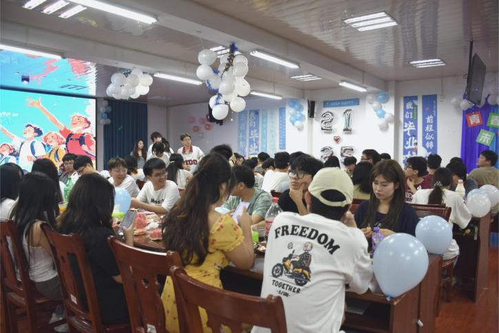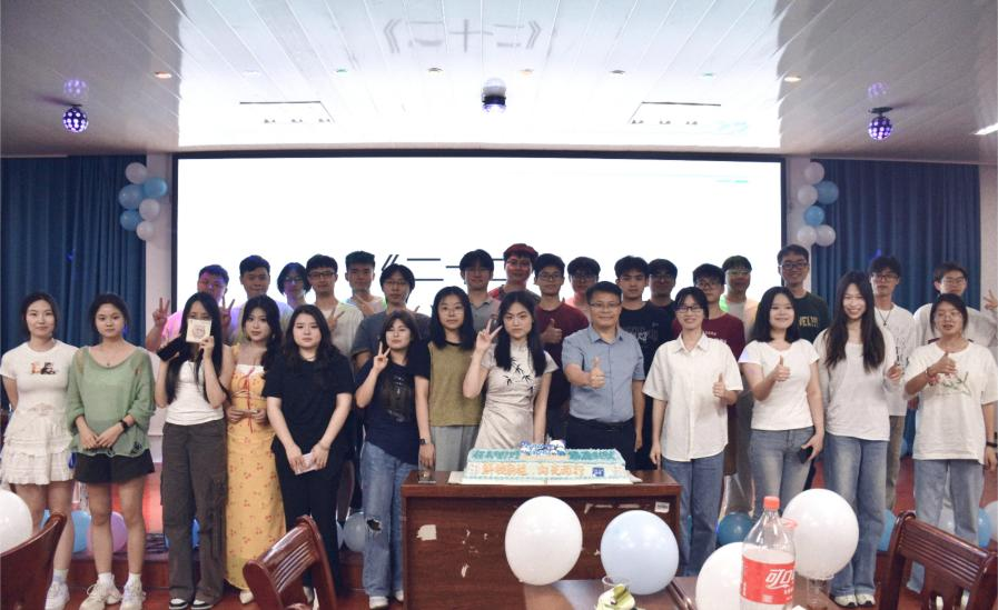 在教学楼门口的心愿打卡区,大家纷纷写下对未来、对母校的快乐期许,与老师和同学留下珍贵的合影;欢送会现场,同学们发挥才艺,载歌载舞,为青春留下最美的瞬间。在“职场盲盒”环节,毕业生在便签纸上写好职场困惑并放入“职场盲盒”,领导随机抽取几个问题结合自身管理经验与行业洞察进行权威解答。“毕业回响传递局”小游戏以击鼓传花的方式点燃全场热情,拿到花的“天选之人”进行才艺表演,师生间笑语盈盈,情谊融融。在“时光寄语”环节,毕业生们在信笺上写下“愿学弟学妹代码零error”“希望学院硕士点更多”“愿成为永远热血的信工人”等创意寄语,既饱含对母校的深情眷恋,更彰显信息工程学子们的专业特质。最后学院为大家送上了喜庆的毕业蛋糕,把活动氛围推向了高潮。大家纷纷表示要做一个热爱母校的人,积极关注母校的发展,以实际行动为母校增光添彩。