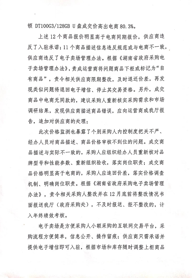 关于电子卖场2021年第三期 商品价格监测结果处理意见的通报