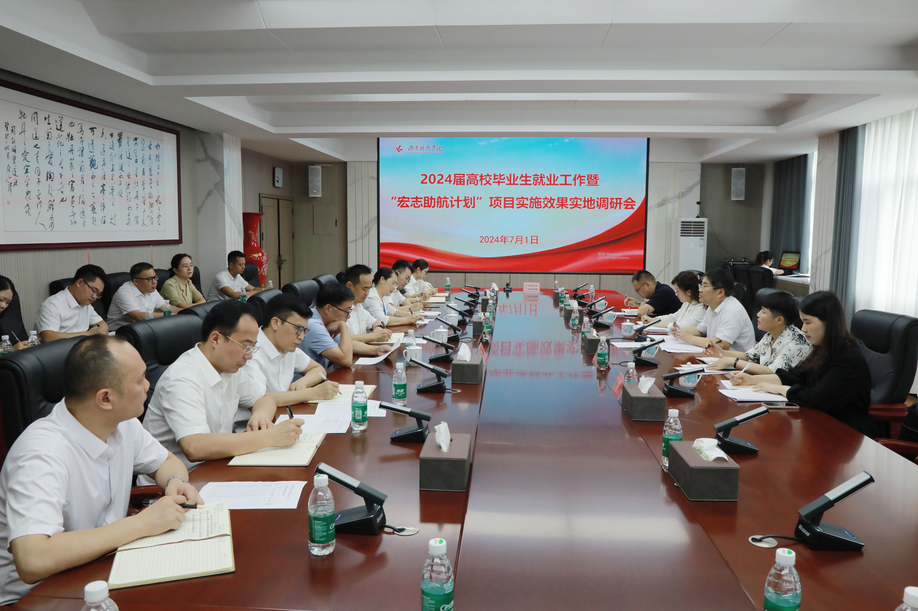 本网讯(通讯员 张亚南)7月1日,湖南省教育厅二级巡视员柴世钦一行莅临我校,就2024届高校毕业生就业工作暨“宏志助航计划”项目实施效果进行实地调研。校长黄创霞、副校长郑银芳、招生就业与创新创业指导处处长胡清华、各教学学院党总支书记、毕业班辅导员及相关工作人员参加调研会。会议由黄创霞主持。