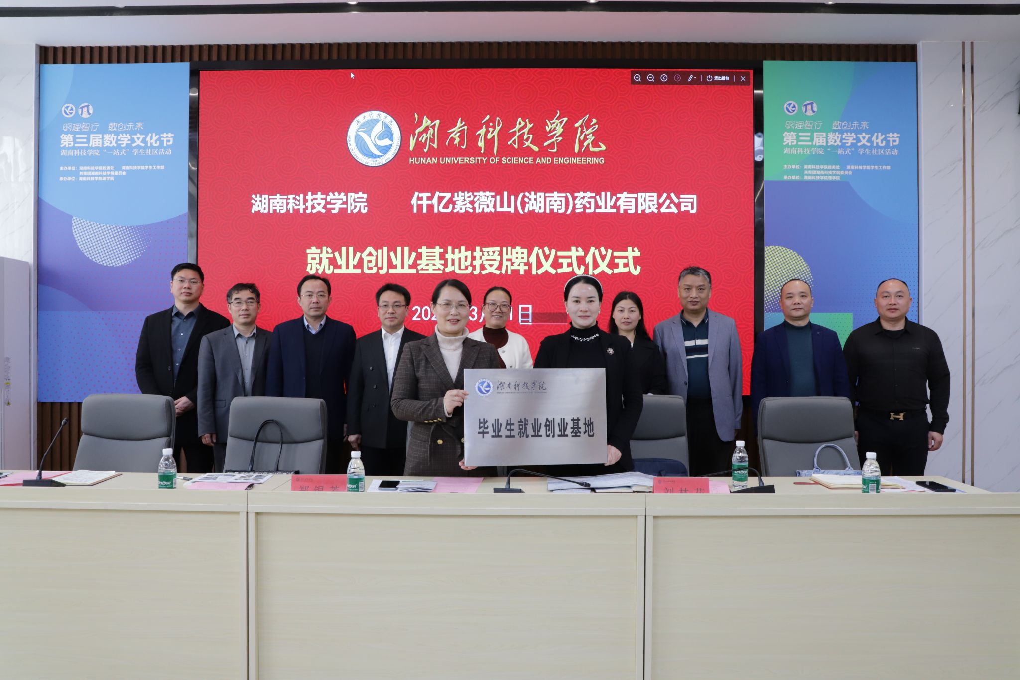 我校还与仟亿紫薇山(湖南)药业有限公司正式签署毕业生就业基地协议,并举行授牌仪式。该公司董事长刘林花详细介绍了人才招聘岗位情况,涵盖生物制药等多个专业领域,为毕业生提供了广阔的发展空间。