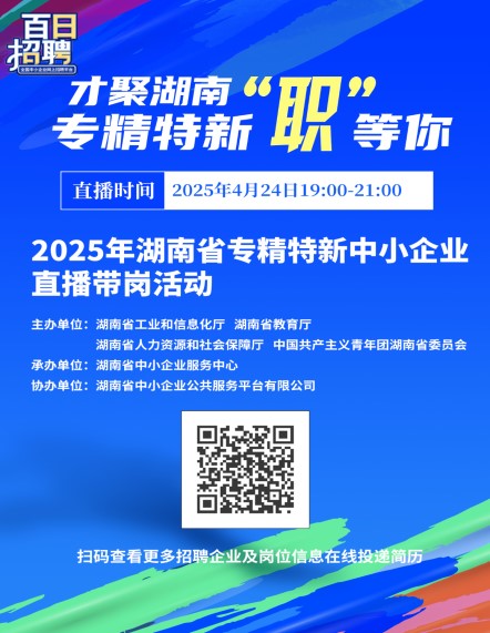 才聚湖南 专精特新“职”等你--2025年湖南省专精特新中小企业直播带岗活动